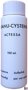 GRANU-CYSTEINE Usage externe - äußerlich - uitwendig - per uso esterno poudre médicamenteuse pour le traitement de plaies à granulation et à cicatrisation difficiles Arzneimittel in Puderform zur Behandlung von schlechtheilenden Wunden medicinaal poeder voor de behandeling van moeilijk heilende wonde farmaco per la cura di piaghe di difficile guarigione ACTESSA Luxembourg Flacon de poudre - Hauteur : 11,5 cm ; diamètre : 3,8 cm. (Collection famille Aschman-Bodson, Luxembourg) |