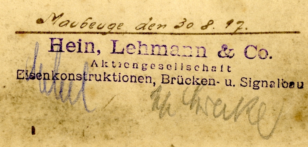 Dabei handelt es sich um den Fragebogen den der Bauherr seinerzeit auszufüllen hatte. Ich habe den ausgefüllten Bogen transkribiert und dem Original angefügt. In dem angehängtem Bild sind beide Exemplare zu sehen. Demnach wurde die Halle 1913/1914 in Louvroil-Maubeuge gebaut. Durch die Firma Hein. Lehmann & Co. abgebrochen und in Willinghusen-Stemwarde wieder aufgebaut. Die Einzelheiten entnehmt ihr bitte den angefügtem Bild. Bereits am 22. Dezember 1917 wurde der Bau genehmigt.
