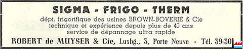 | Avril 1947 | 39 30 de Muyser, Robert & Cie, importation, représentation, exportation, Côte d’Eich, 25. Indicateur officiel des téléphones - avril 1947 - Imprimerie St. Paul. Luxembourg (Collection Philippe Aschman). |