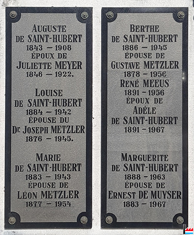 | Léopold-Xavier de Saint Hubert - Meyer (* 15.11.1803 à Sosoye / Belgique, arrivait 1840 à Luxembourg, + 17.5.1864 à Luxembourg; marié avec Marie-Anne Meyer 1808-1888, fille de Nicolas Meyer et de Marguerite Block) | |||||||||||||||||
