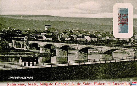 Naturreine, beste, billigste Cichorie A. de Saint-Hubert, Luxemburg - Adolphbrücke - Carte postale publicitaire (Collection Ph. Aschman)