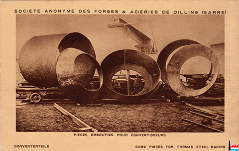 Dillinger Hütte - Société anonyme des forges et aciéries de Dilling (Sarre) - Pièces embouties pour convertisseurs - Converterteile - Some pieces for Thoma Steel Making (Carte postale: Collection: industrie.lu)