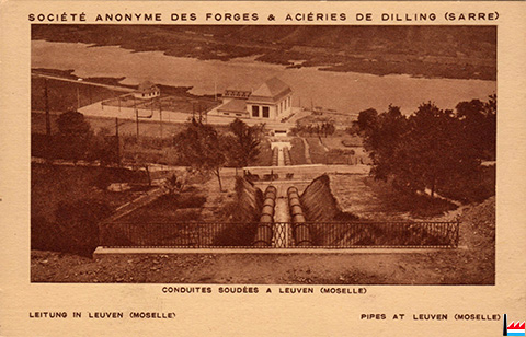 Dillinger Hütte - Société anonyme des forges et aciéries de Dilling (Sarre) - Conduites soudées à Leuven (Moselle) - Leitung in Leuven (Moselle) - Pipes at Leuven (Moselle) (Carte postale: Collection: industrie.lu)