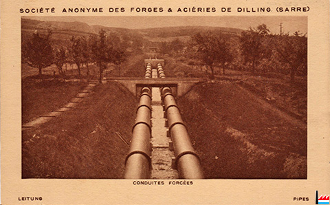 Dillinger Hütte - Société anonyme des forges et aciéries de Dilling (Sarre) - Conduites forgées - Leitung - Pipes (Carte postale: Collection: industrie.lu)