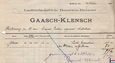 | 1909 | Landwirtschaftliche Branntwein-Brennerei Gaasch - Klensch, Kehlen | ||