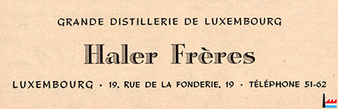 | 1948/49 | Grande Distillerie de Luxembourg Haler frères 19, rue de la Fonderie, Luxembourg |