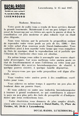 Publicité Ducal-Radio de 9.1947 (Collection: industrie.lu)