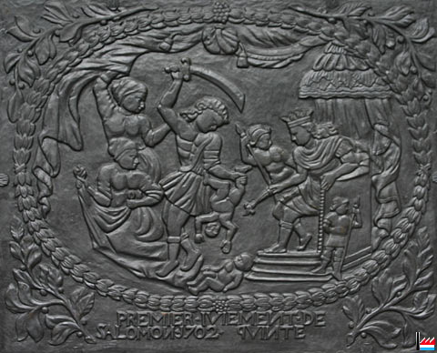 Takenplatte aus der Quinter Hütte: Premier jugement de Salomon 1702 Quinte - Das erste salomonische Urteil (Foto: jmo) |