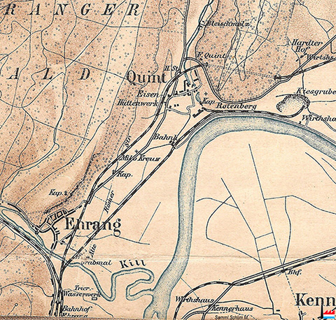 | 1879 | Eröffnung der Bahnlinie Trier - Niederlahnstein (Koblenz) mit einem Haltepunkt in Quint |