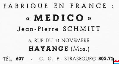 | 3.3.1958 | ![]() MEDICO - Brevet d'invention français 1.160.546 |