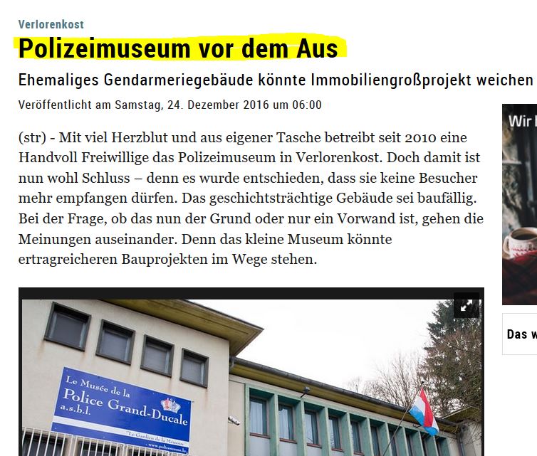 Luxemburg: Polizeimuseum vor dem Aus - 24.12.2016