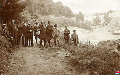 Le jeune homme à droite avec le chapeau blanc est Camille Aschman junior. Derrière le groupe d'élèves, avec le chapeau blanc se trouve son père, le Dr. Camille Aschman senior, professeur à l'École agricole à Ettelbrück et préposé de la Station agricole de cet institut. (Collection famille Aschman-Bodson)