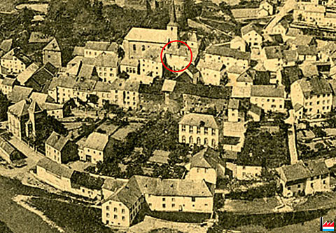 Flaschenkorkfabrik Demuth um 1918 (Extrait de la carte postale: Nr. 20 Manufacture de cartes P. Houstraas, Luxembourg, Rue Augustins; Collection: industrie.lu)