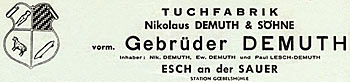 Tuuchfabrik J.N. Demuth & Fils, Esch-Sauer - Tél. 9
