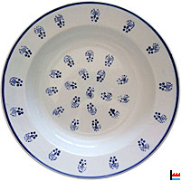 Faïencerie J. Lamort, Echternach: Porcelaine opaque Lamort Echternach Assiette creuse avec décor imprimé bleu d'une guirlande sur l'aile tandis que le médaillon traditionnel de WHILLOW Diamètre. 24 cm |