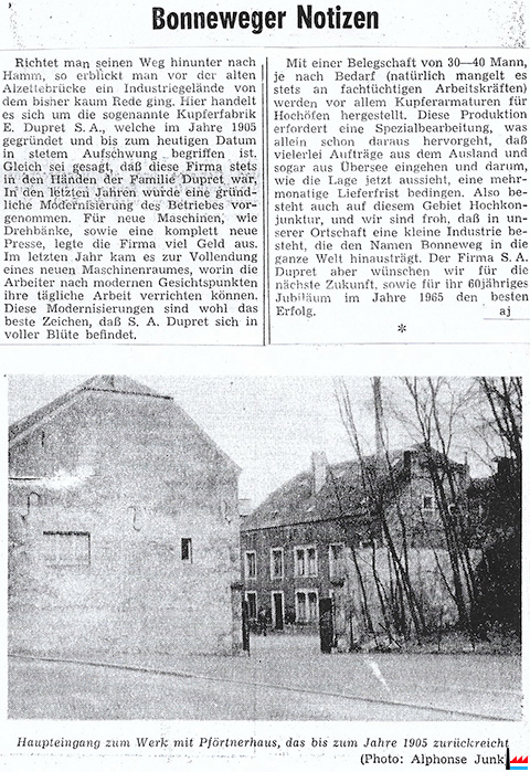 ![]() Kupferfabrik Dupret, Bonneweg (Photo: A. Junk / LW: 18.4.1964; p. 18; Scan: Fernand Tousaint) |