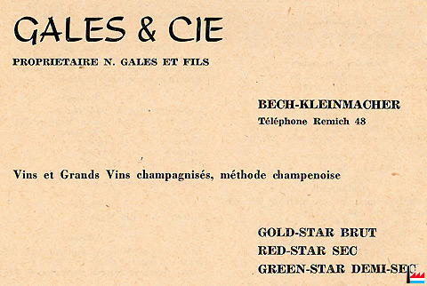 | 1922 | Gales & Cie, Les Propriétaires Réunis de Vignobles, Bech-Kleinmacher | ||