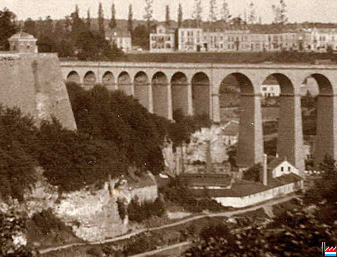 | <=1934 | ![]() Gazomètre de l'ancienne fabrique de gaz, Pétrusse + Passerelle (pont), Luxembourg - <=1934 (Carte postale: Edition W. Capus, Luxembourg N° 23; Collection: industrie.lu) |