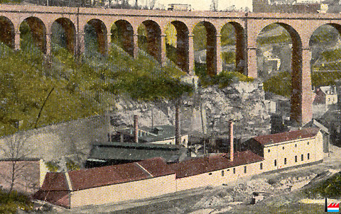 Gasfabrik Luxemburg - Passerelle, Basse Pétrusse (Extrait d'une carte postale; Collection: industrie.lu)