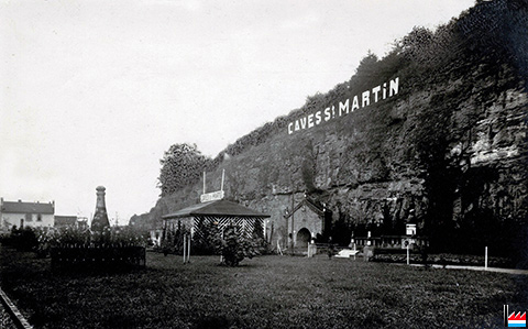 ![]() Caves St. Martin (Photo Richtung Remich), am Hannergrond d'Gaswierk vun Réimech. D’Gebai vum eemolegen Gaswierk grenzt jo direkt un d’Caves St. Martin. (Photocarte W. Capus - Ed Felten-Zenner, Remich N° 2; collection industrie.lu) |