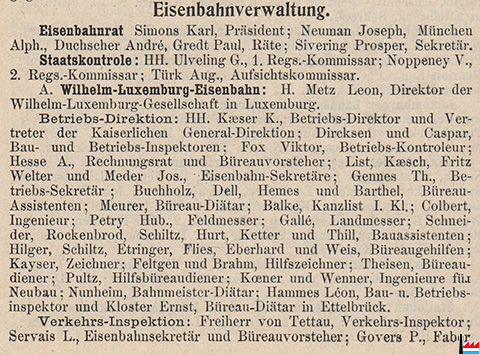 Eisenbahnverwaltung - Eisenbahnrat - Staatskontrolle - Wilhelm Luxemburg-Eisenbahn -1904