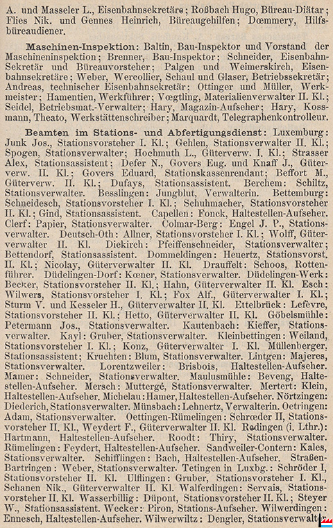 | <=1903 | Nicolas Caspar, inspecteur d'exploitation des Chemins de fer d'Alsace-Lorraine à Luxembourg | ||