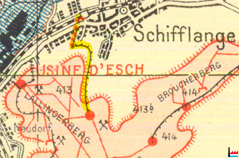 | 1.9.1908 | Schifflingen, 1. Sept. (Einbruch.) In ein isoliert gelegenes Büreau der Gesellschaft „Ougrée“ zu Grube Hondelerberg gelegen, wurde nachts eingebrochen und 20 Kränze Zündschnur, 1 Karbidlampe und Kleidungseffekten durch bisher unbekannten Dieb gestohlen. (BBZ: 5.9.1908) |