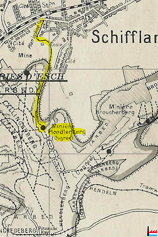 Mine Hondlerberg (Ougrée) (Aus: Daten aus der Luxemburgischen Eisenindustrie, n° IX. - Zusammengestellt von Camille Aschman, A-Z, 08.1935 - Collection famille Aschman-Bodson)