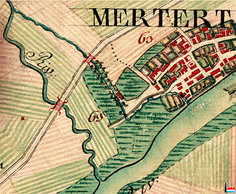 Donckelsmillen an Haffmillen (an die Mosel stoßend), Mertert - 1777 (Carte de Ferraris - Bibliothèque royale de Belgique - 2010)