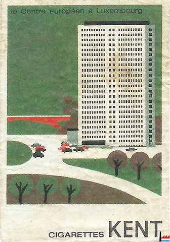 Cigarettes Kent - le Centre européen à Luxembourg . - Étiquette d'une boîte d'allumettes - 51 x 35 mm (Collection Philippe Aschman)