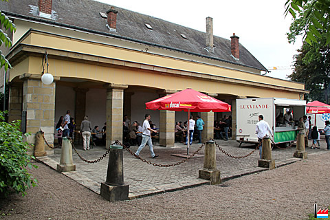 L'ancien Corps de Garde, construit en 1827 à la Place d'Armes (à l'endroit du Cercle), Luxembourg-Ville - démolition en 1902 - reconstruction à partir des débris dans le parc Heintz Van Landewyck à Hollerich (Photo: