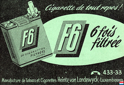 F6 - 6 fois filtrée - Pub Annuaire officiel des abonnés au téléphone Luxembourg - 1962 (Collection: industrie.lu)