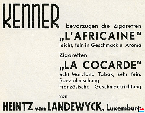 Zigaretten L'AFRICAINE - LA COCARDE - HEINTZ VAN LANDEWYCK, Luxemburg - Pub - 1935