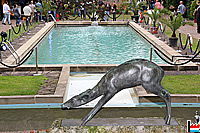 Parc Heintz Van Landewyck avec piscine de natation et sculpture d'Auguste Trémont (Collection: Gretsch) à Hollerich (Photo:
