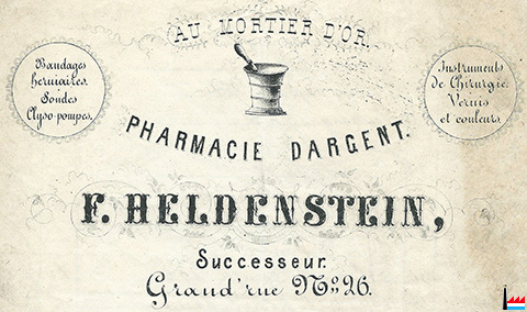 | <=1861 | AU MORTIER D’OR - PHARMACIE DARGENT - F. HELDENSTEIN, Successeur Großstraße 26, Luxemburg |