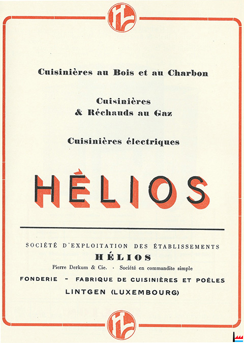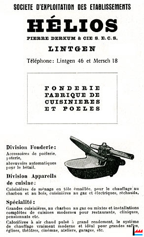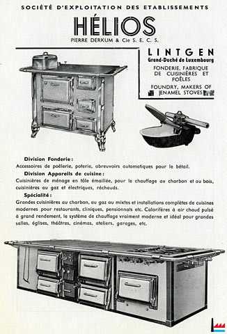 1955 - HÉLIOS - Fonderie - Fabrique de cuisinières et poêles - Lintgen - Dans: "Luxembourg - Au service du Congo" - Publié par le Service d’expansion économique avec la collaboration de la Fédération des industriels, 1955, Imprimerie Bourg-Bourger, Luxembourg (Collection Charles-Louis Aschman)