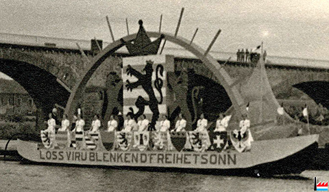 | 9.7.1939 | ![]() Loss viru blenken d'Freihetsonn, Kantonalfest in Remich - 9.7.1939 (Cartes postales: Collection: industrie.lu) Umzug zur Unabhängigkeitsfeier des Großherzogtum Luxemburgs 1839 - 1939 auf der Mosel |