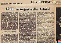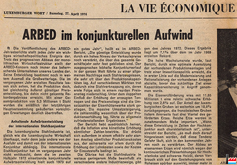 | 31.12.1961 | L'histoire du "Board of Industrial Development - BID" se termine, au 31 décembre 1961, abruptement. Le BID, au bout de trois ans à peine, était devenu victime de son succès. L'initiative de Joe Gurley a marqué un tournant dans l'histoire économique du Luxembourg. Ses succès donnent la raison de cette dissolution, qui se résume par une en-tête dans le New York Herald Tribune du 12 février 1964: "One unemployed worker in all the duchy". C'était le problème invoqué, surtout par l'ARBED, pour terminer le BID en 1961: qu'il n'y avait plus de main d'œuvre et que les taux des salaires iraient en s'envolant. (Source: Egide Thein) |
