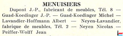 | Beidweiler | Sauber Eugène | Menuiserie | 1935 | |||