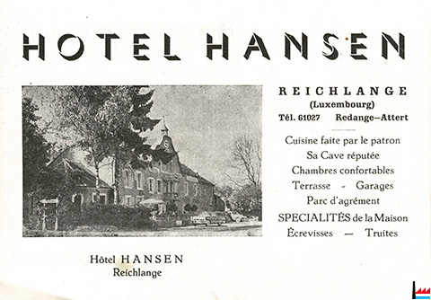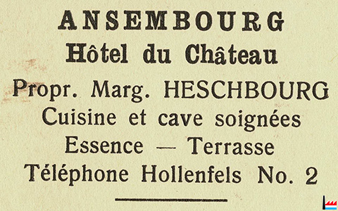 <=1948/49: Hôtel du Château, Ansembourg, prop. Heschbourg Marg., Tél.: 2 Hollenfels, Café, Hôtel, Restaurant