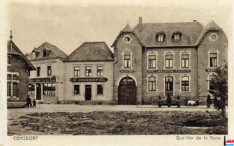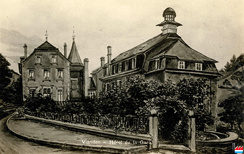 Das neue Hotel in Altlinster (32 Fenster, 2 Stockwerke, wenigstens 20 Zimmer) soll als Café de la Station und zugleich als Stationsgebäude der neuen Bahn Junglinster - Fels dienen. (LBZ: 15.10.1910)