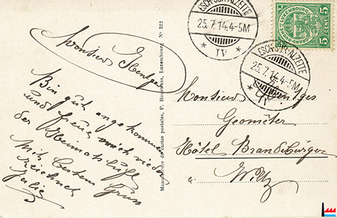 postale: Manufacture de cartes P. Houstraas, Luxembourg, Rue des Augustins, Nr 836; collection: industrie.lu)