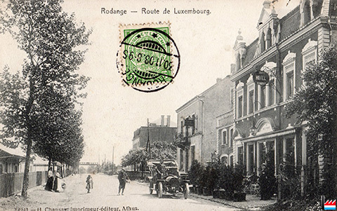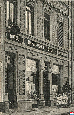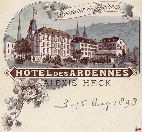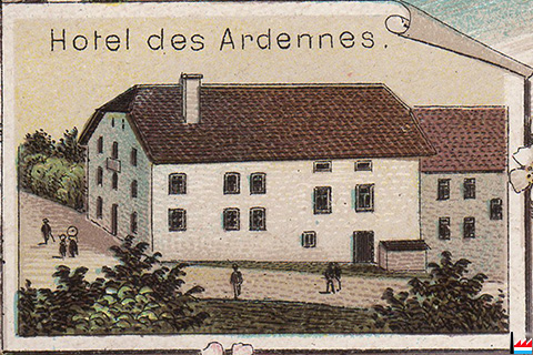 Hôtel Bonnardeaux, Athus (Belgique), vers 1906 (Carte postale: Athus, Papeterie A. Delesenne, Edit H.D.G.; Collection: industrie.lu)