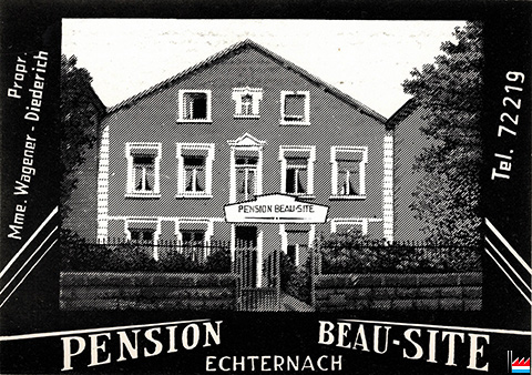 Grand Hôtel de Beaufort, Beaufort, propr. Jos. & Fr. Lenertz, tél: 47 (Carte postale: Manufacture de cartes vues E. Hansen, Mersch; Collection: industrie.lu)
