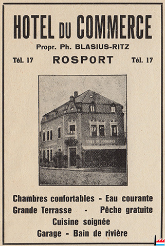 9.1919: Befort, 8. Nov. 1919 (Immobilienpreise) Das frühere Hotel Bleser, weit und breit unter dem Narmen „Touristenhotel“ bekannt und erst kürzlich von Michel Lentz-Steyer, Handelsmann in Mersch erworben, ging dieser Tage durch freihändigen Kauf an Mathias Mischel vom Rodeschhof bei Echternach, zum Preise von 54.000 Fr. über. (Die Volkstribüne: 8.11.1919)