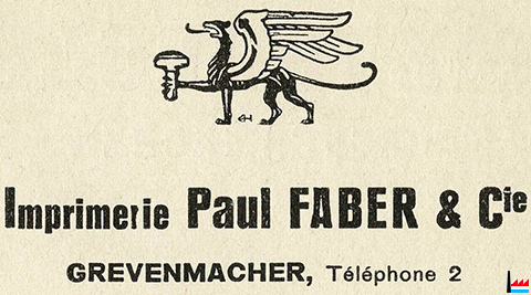 | <=1935 | ![]() Imprimerie Paul Faber, Grevenmacher rue de Thionville, tél: 2 Druckerei der Obermosel-Zeitung 1948: Imprimerie de l’Est |