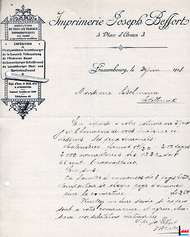 | <=1907 | Beffort Viktor, Buchdruckerei, Luxembourg 10 rue Chimay |