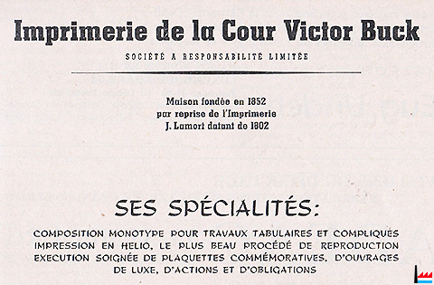 | 1947 | Ateliers de reliure Dufays, Ernest Glesener - Stors succ., 7 rue des Bains, Luxembourg |
