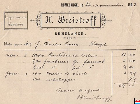 | <=1935 | Imprimerie Breistroff Henri, Rumelange, 9 rue de l'Hôtel de Ville |