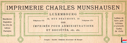 Imprimerie Charles Munshausen, 13 rue Beaumont, Luxembourg Tél: 1751 - 1921 (Collection: industrie.lu)